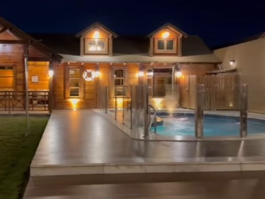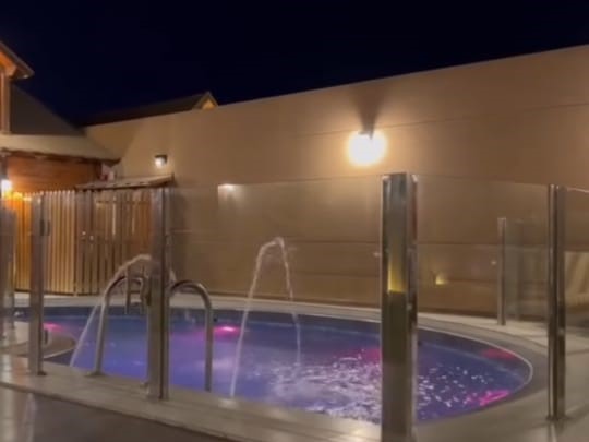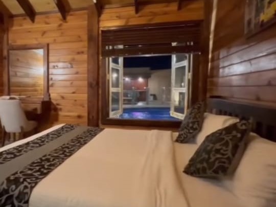 شاليه أنيق يحتوي على غرفة واسعة بسرير مريح، حمام فاخر، ومسبح داخلي خاص. يتميز بديكور عصري مع مساحات رحبة تناسب العائلات.