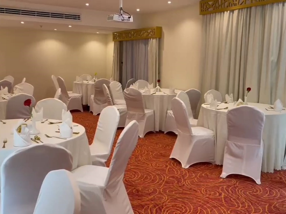 - القاعة الذهبية: بسعة حتى 100 ضيف، مثالية لحفلات الزفاف والمناسبات الخاصة.