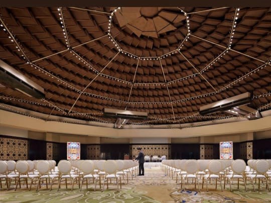 القاعات واسعة ومرنة من حيث التصميم، وتتسع لأعداد كبيرة من الحضور،