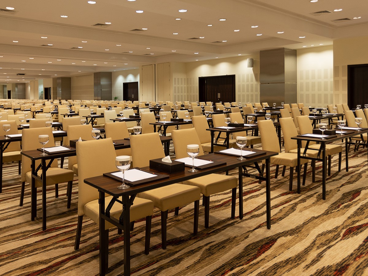 قاعة ابن بطوطة بمساحة مرنة توصل إلى 1,243 متر مربع، مثالية للاحتفالات الكبيرة والمؤتمرات والمناسبات اللي تحتاج أعداد ضخمة. تصميمها يجمع بين الرحابة والعملية عشان يلبي كل تطلعاتك.