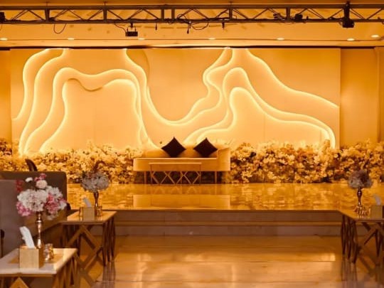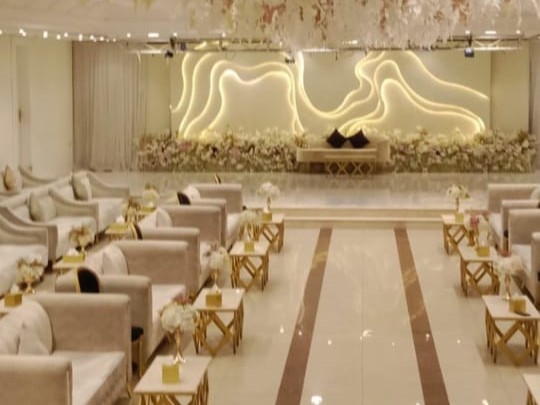 قاعتنا مجهزة بأحدث الديكورات العصرية الفاخرة، أسقف مزينة بالثريات الكريستالية، أرضيات فخمة، وتصاميم تخلي حفلكم مليان أناقة ورُقي.
