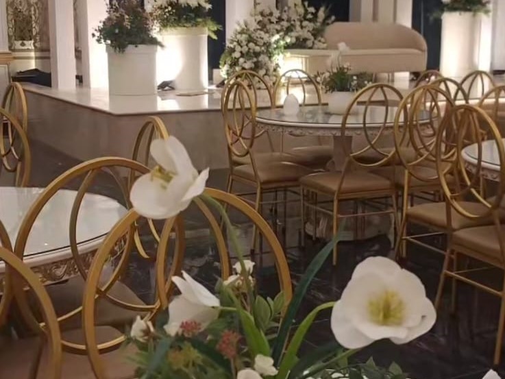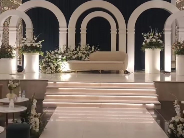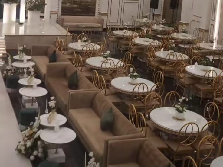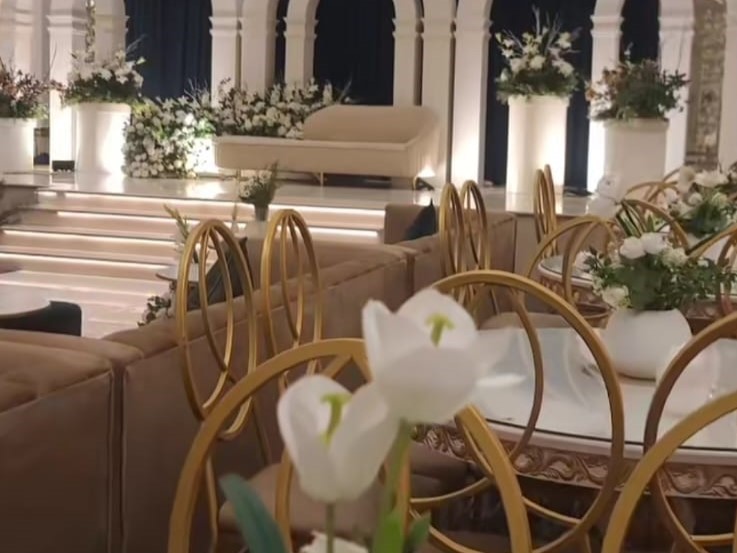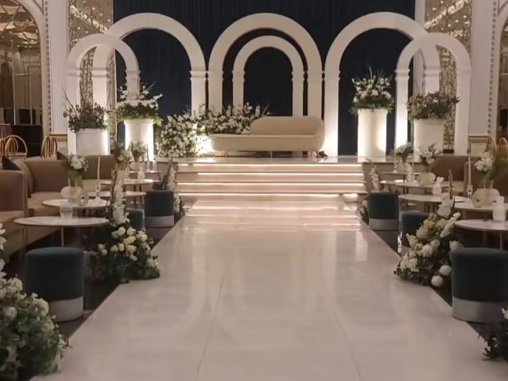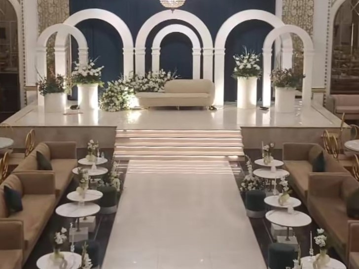 عندنا قاعتين منفصلتين، وحدة للرجال والثانية للنساء، وكل وحدة تسع حتى 400 شخص بكل راحة وأناقة. قاعة النساء مصممة بذوق فخم وألوان راقية، فيها كوشة ملكية وممر زفة يفتح النفس، وطاولات مزينة بأجود أنواع الورد والفازات اللي تضيف جو فخم وراقي للمكان.