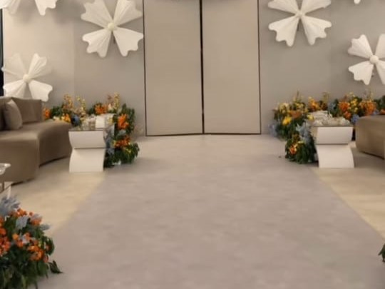 - علاوة على ذلك، نوفر درج زفة ملكي محاط بباقات الزهور.