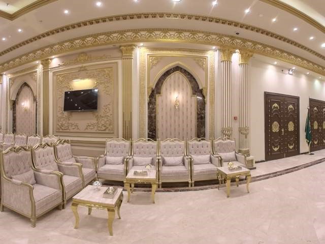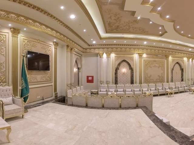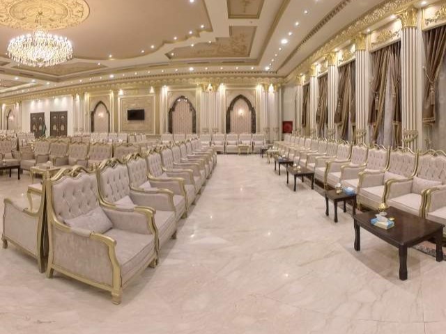 قاعتين فخمة: وحدة للرجال ووحدة للنساء، كل قاعة بمساحة كبيرة وتصميم ملكي