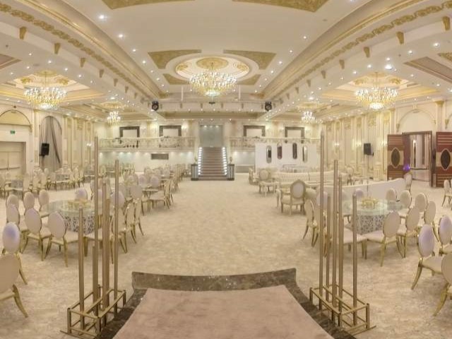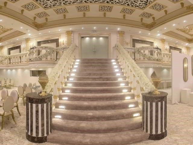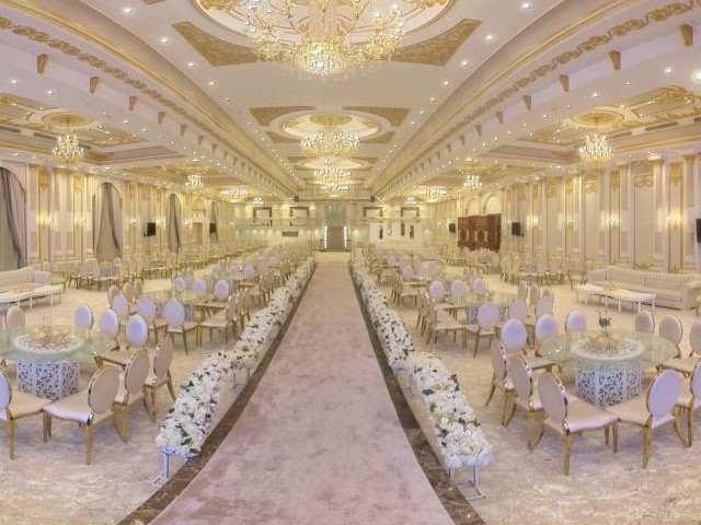 قاعاتنا تتميز بسقف عالي وثريات كريستال، زخارف أنيقة، ألوان راقية، وستايل كلاسيكي فخم. قاعة النساء فيها ممر زفة مرتفع، ومسرح فاخر يوضع عليه الكوشة بتصميم فاخر، وكراسي وطاولات بتفاصيل راقية
