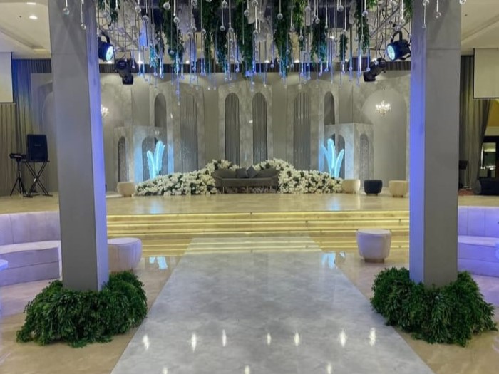 ثريات كريستالية ضخمة، أرضيات رخامية لامعة، أثاث فاخر مريح، وإنارة حديثة تعكس أجواء ملكية تضيف لمسة فخامة على كل لحظة.