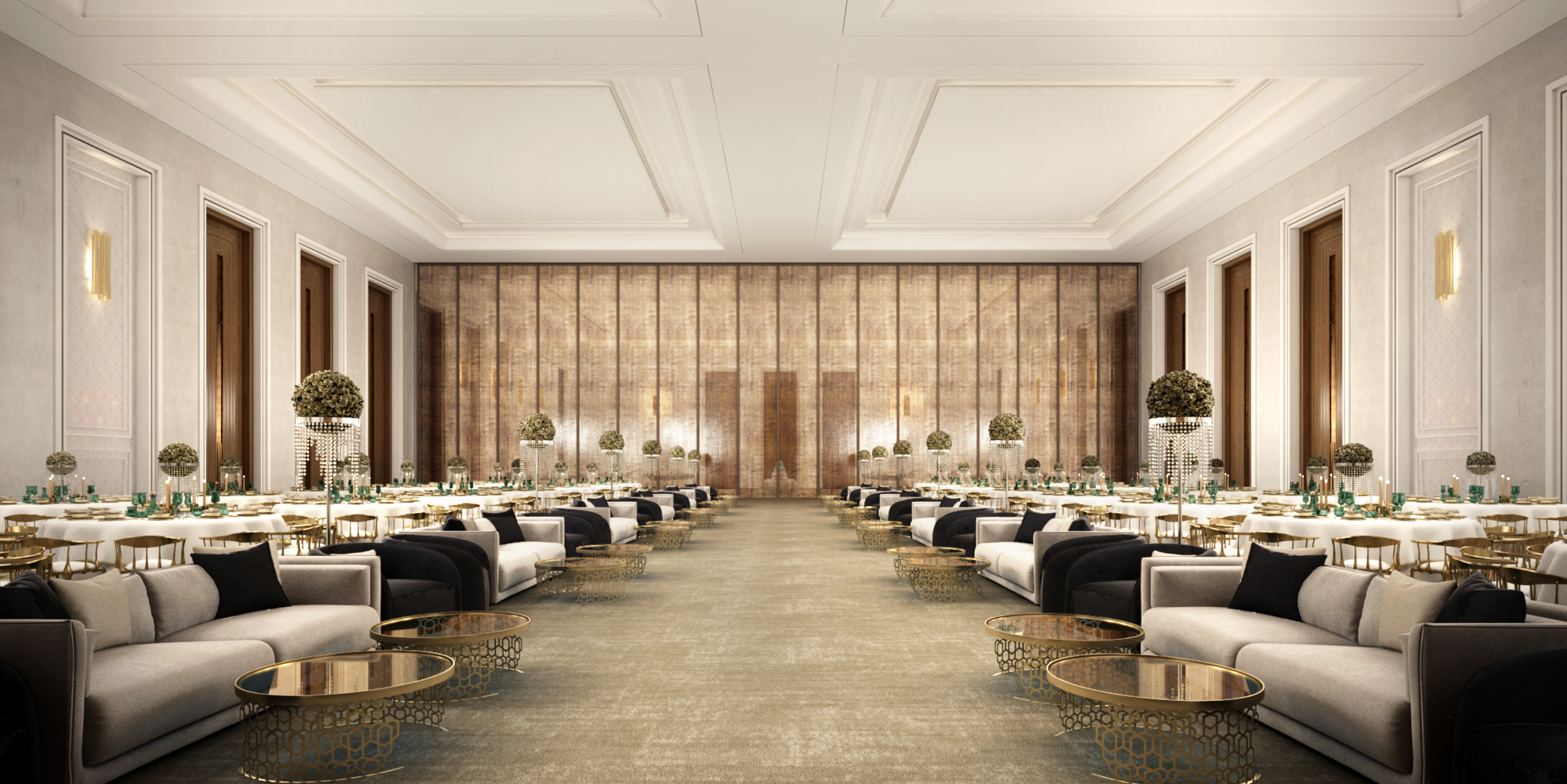 إعدادات مرنة لحفلات الزفاف، الاجتماعات الرسمية، المؤتمرات، والفعاليات الخاصة، مع إمكانية الدمج بين القاعات المختلفة حسب طبيعة الحدث.
