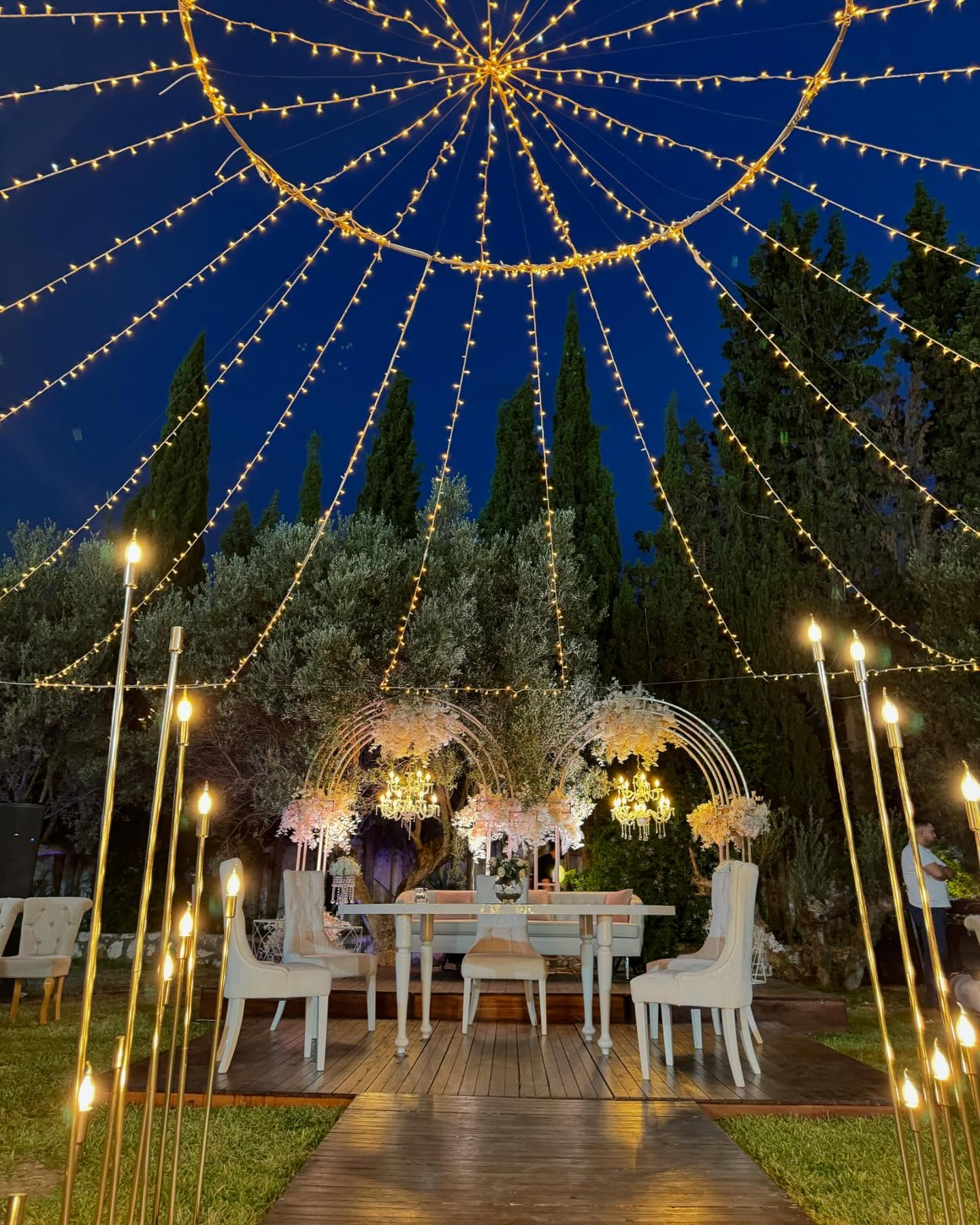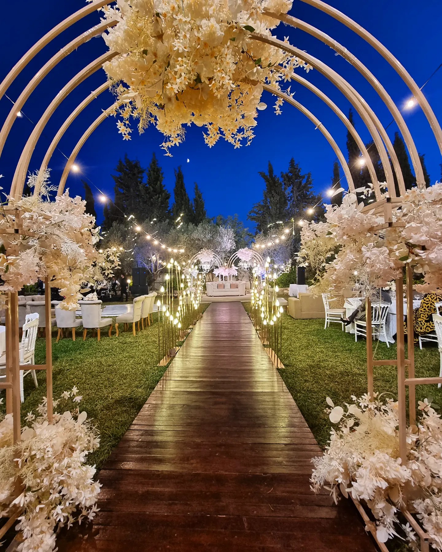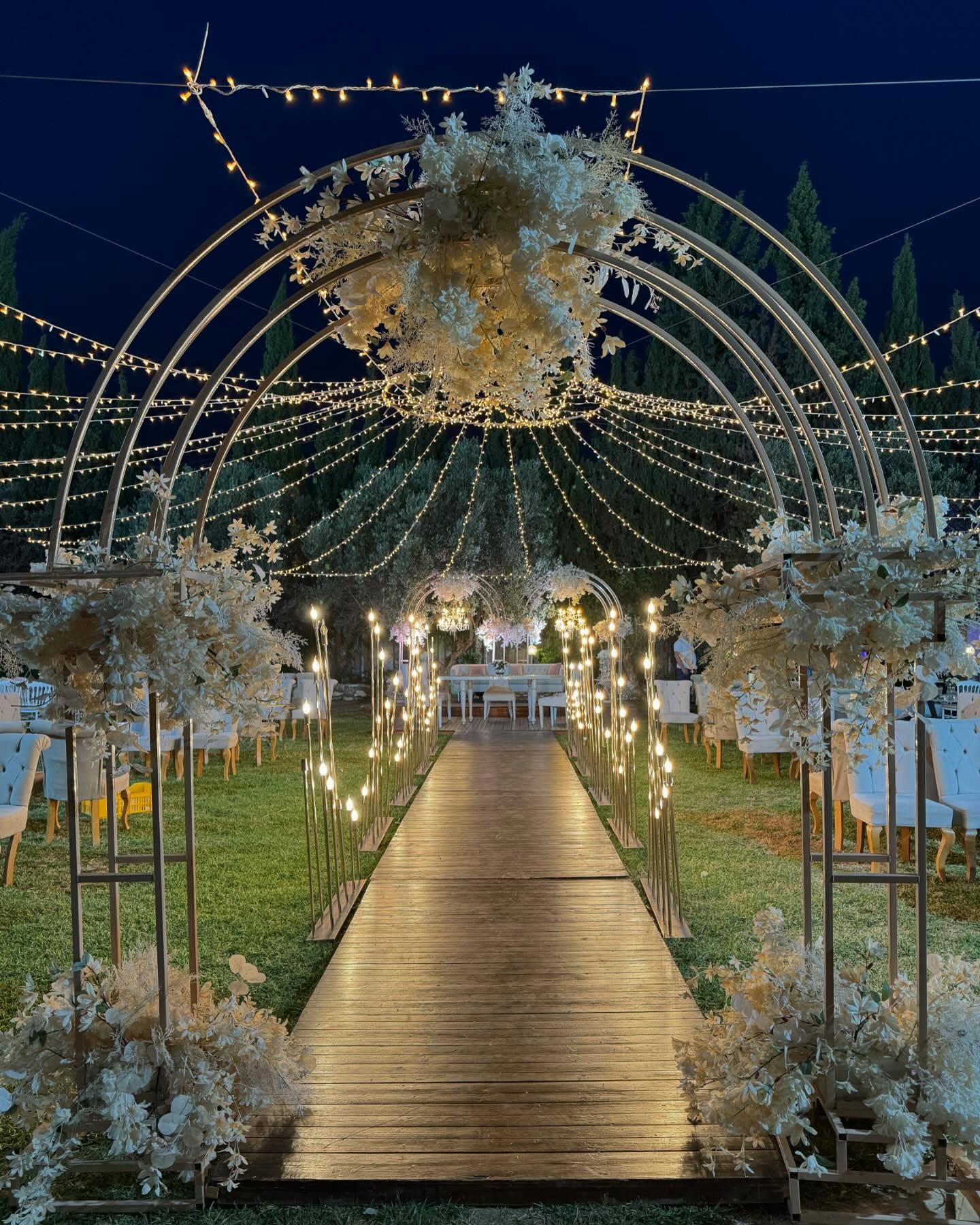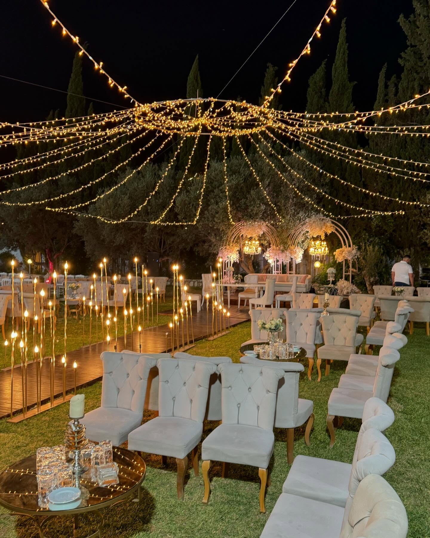 القاعة الخارجية الأوبن إير بقصر المناسبات تقدّم تجربة مختلفة وسط الطبيعة، بطاقة استيعاب تصل إلى 500 شخص. حديقة واسعة، أشجار زيتون وسرو، وأجواء مفتوحة مثالية للأعراس والاستقبالات اللي تحبّ الفخامة بروح طبيعية.